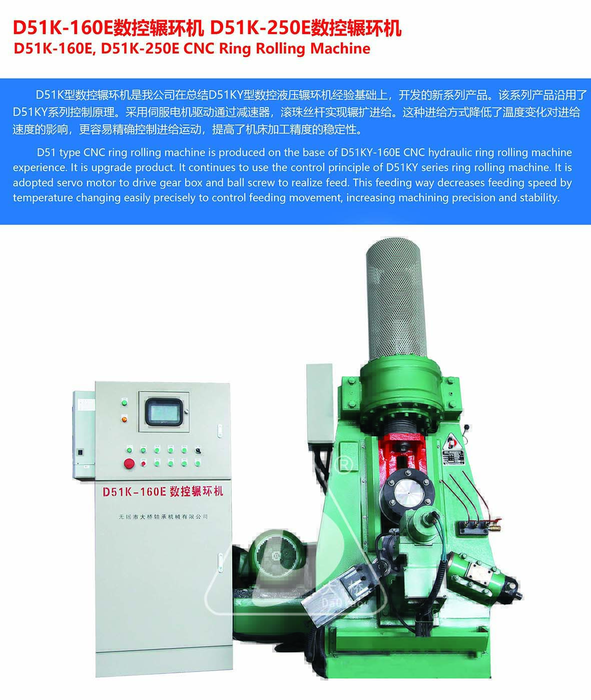 D51K型數(shù)控輾環(huán)機是我公司在總結(jié)D51KY型數(shù)控液壓輾環(huán)機經(jīng)驗基礎(chǔ)上,開發(fā)的系列產(chǎn)品。該系列產(chǎn)品沿用了 D51KY系列控制原理。采用伺服電機驅(qū)動通過減速器,滾珠絲桿實現(xiàn)輾擴進給。這種進給方式降低了溫度變化對進給 速度的影響,更容易精確控制進給運動,提高了機床加工精度的穩(wěn)定性。
